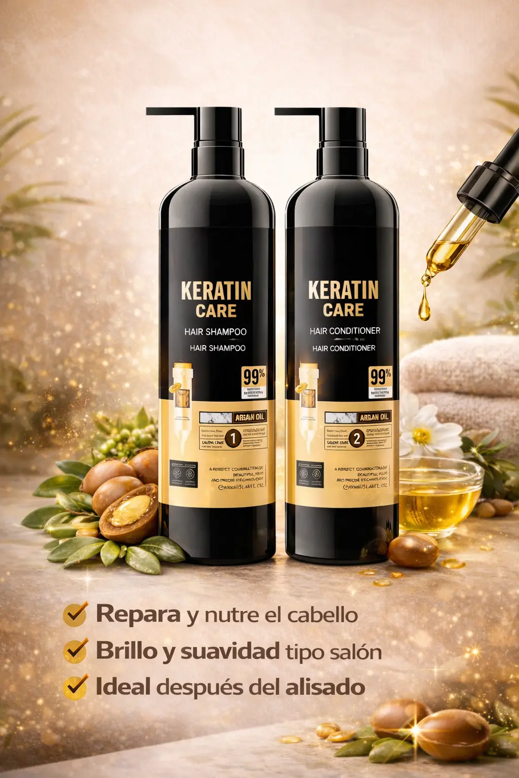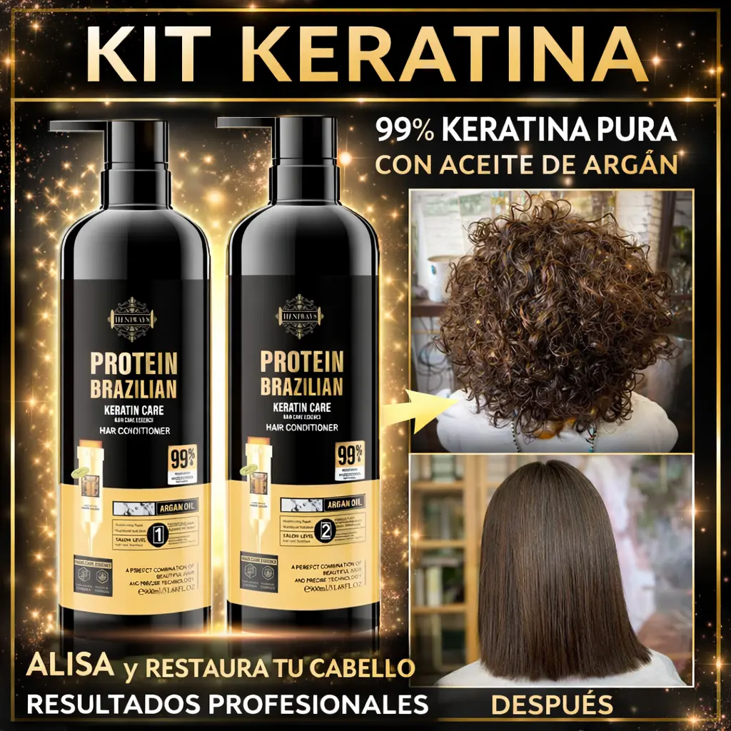 Con este kit de keratina (shampoo + acondicionador) podrás nutrir, reparar y devolver la vida a tu cabello desde el primer uso.